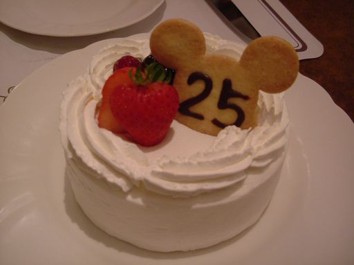 で彩られ、レストランでは25周年記念のケーキ